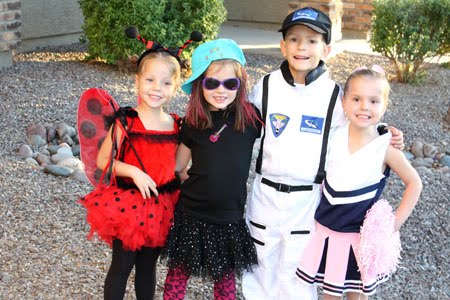 Not many pics of the kids in their costumes because they were way too anxious to get candy and we had just had portraits done! But Kyler was an astronaught, Danika was a rock start, Makenzie was a cheerleader, and Laynee was a ladybug.